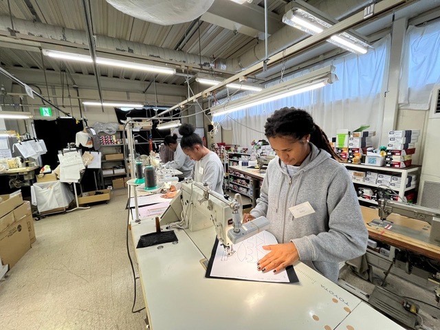 縫製プロジェクトを進める為に⽇本国内での研修先は、福井県勝⼭市の縫製⼯場ラコー